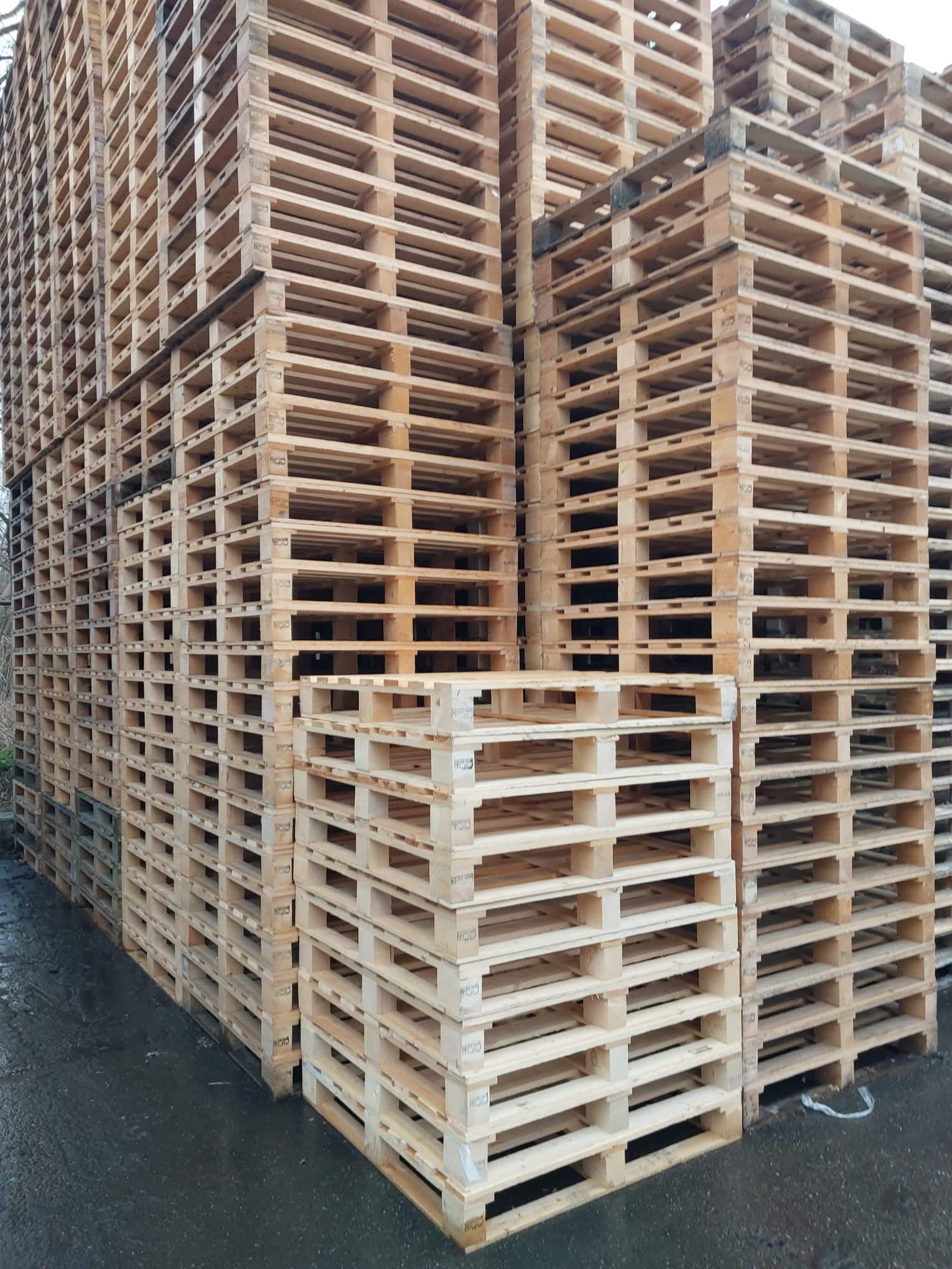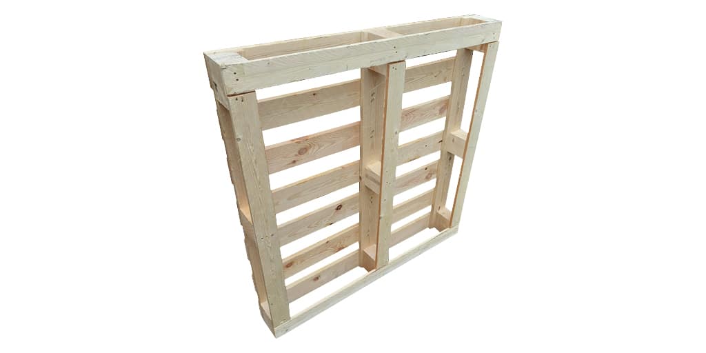 Deze nieuwe houten blokpallet heeft een afmeting van 113x114cm. Het is een omlopende uitvoering.